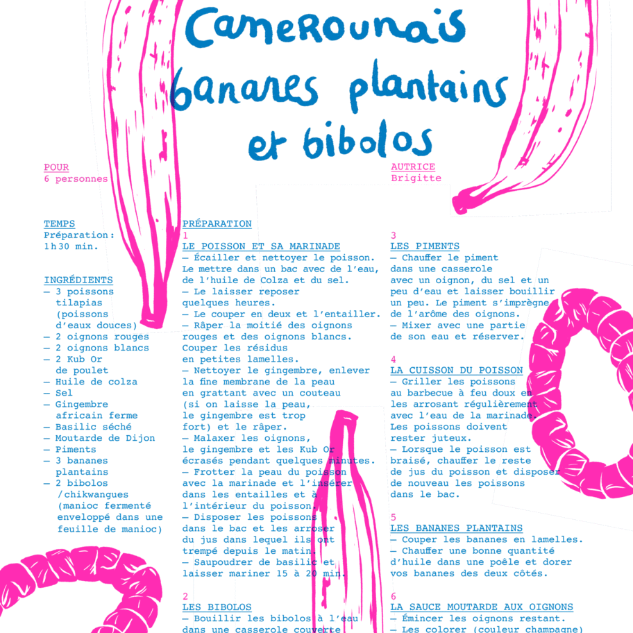 Poisson braisé camerounais, bananes plantains et bibolos